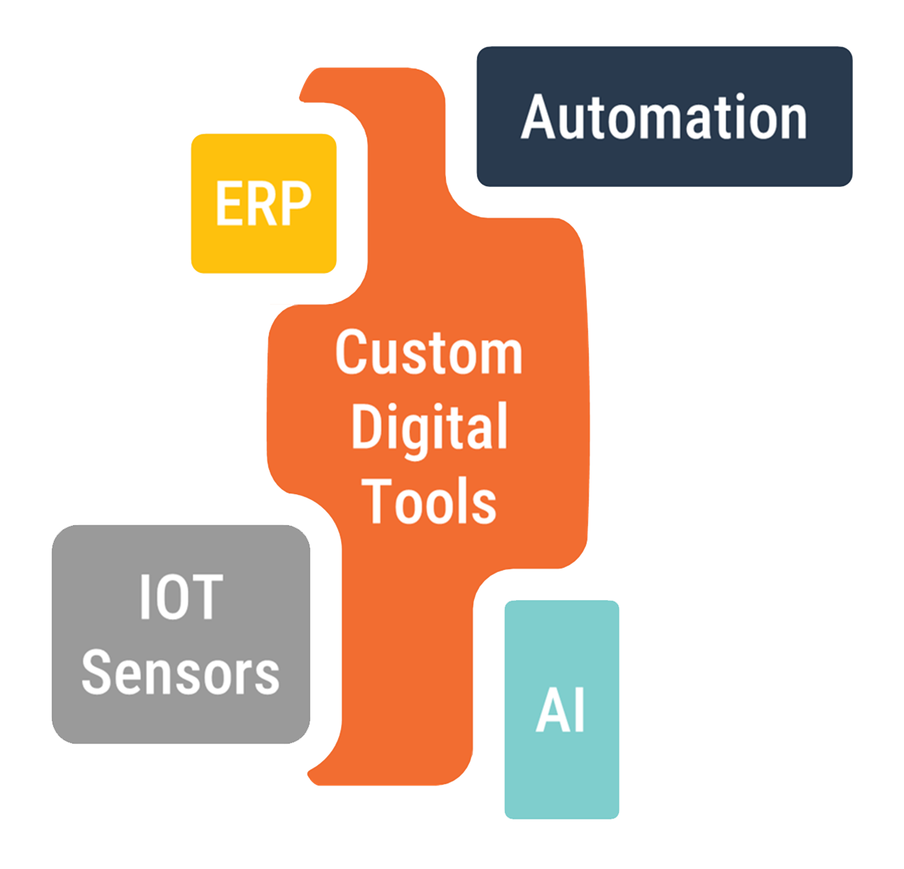 To create seamless integration between advanced technologies, like AI, Internet of Things sensors, or automated production lines, and your existing systems, you need custom digital tools to act as the glue that holds them together. Whether it’s just a small software bridge to ensure data ends up in the right place, a system that ensures your organisation’s business rules are followed properly, or a custom web portal that links your suppliers, customers and internal systems, custom digital tools offer great benefits.